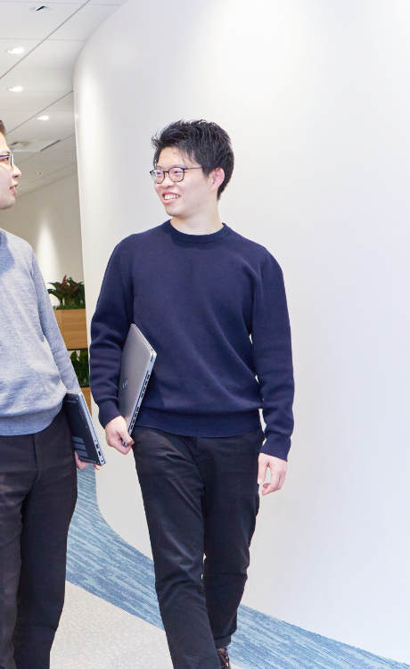 同期入社は私ともう1名のみ。自分とは性格も考え方も対照的で、新たな視点や学びを与えてくれる存在です。研修の際には、自分にはない考え方を彼からたくさん学びました。
